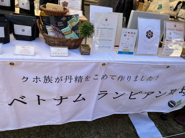 さて食後のコーヒーという体でもう一杯飲んで帰りますか…疲れたし。そこで目にしたのが「ランビアン珈琲」。ベトナムのコーヒーがハーフ&ハーフで飲み比べできるというところに惹かれましたね。同じ豆でウオッシュド、ナチュラル、アナエロビックウオッシュド、アナエロビックナチュラルの4種類があるという事でしたので、私は両極端?のウオッシュド、アナエロビックナチュラルを選びました。パンフを渡されたので見てみると「タキヒヨー」さんが手がけているんですね。東海地区を代表するアパレル会社ではないですか。生産工場のあるベトナムで縁あって始めることになったとの事で、なんだか嬉しい話です。ベトナムというとどうしても砂糖をたっぷり入れたベトナムコーヒーのイメージがありますが、現在ではスペシャルティもかなり手がけているんですよね。比較してみるとスッキリしたウオッシュド、濃厚なアナエロビックナチュラル、というまあ当然と言えば当然の感想になりますけど、一種類の豆で違いが出せるのは大きいですね。