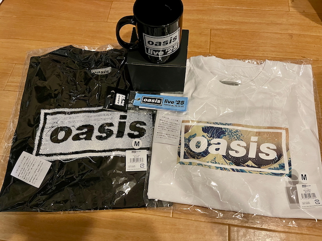 雰囲気を味わう手段としてはもう一つ、「グッズ」がありますね~。バンドの象徴とも言える「OASIS」ロゴはカッコよくて印象的。パッと見てわかる、アイコンですよね。