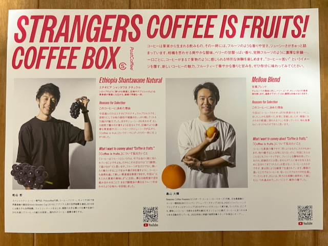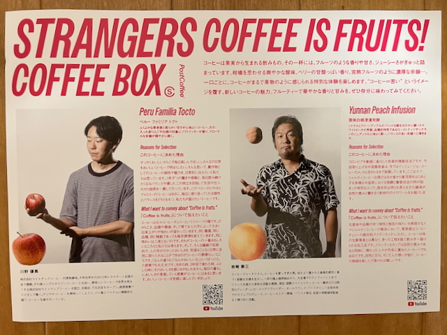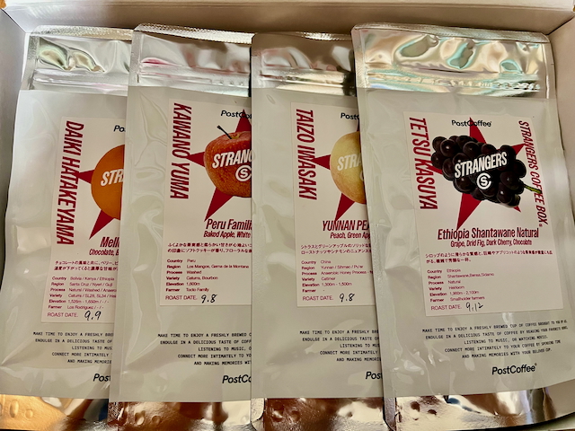先日行った「SCAJ 2025」で購入した「Stranger’s Box」。「PostCoffee(ポストコーヒー)」がプロデュースしている人気シリーズですね。こちらは粕谷哲、畠山大輝、川野優馬、岩崎泰三と現代コーヒー界をリードする4人があるテーマを元に素晴らしいコーヒー体験を届けてくれるというもの。SCAJでは先行発売だったわけですね。(ただ現在も予約販売終了してしまいました)